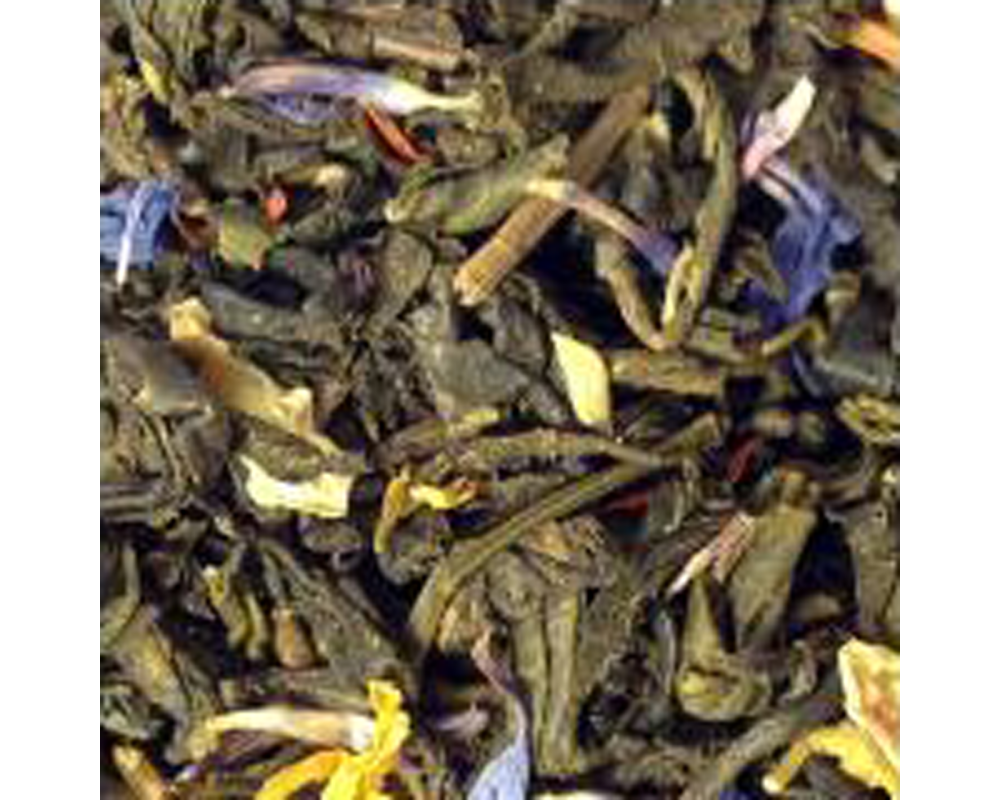 Green tea, sunflower, cornflower, jasmine, osmanthus, safflower and calendula petals.