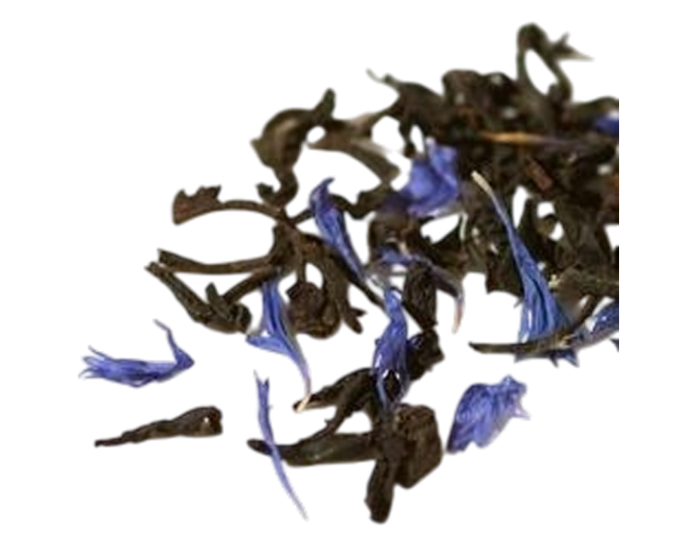 Black tea, cornflower petals.