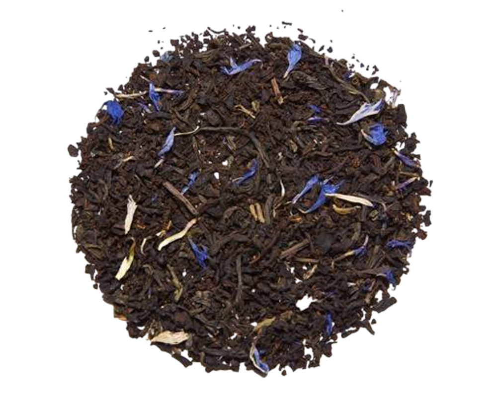 Black tea, green tea, jasmine and cornflower petals, natural flavours.