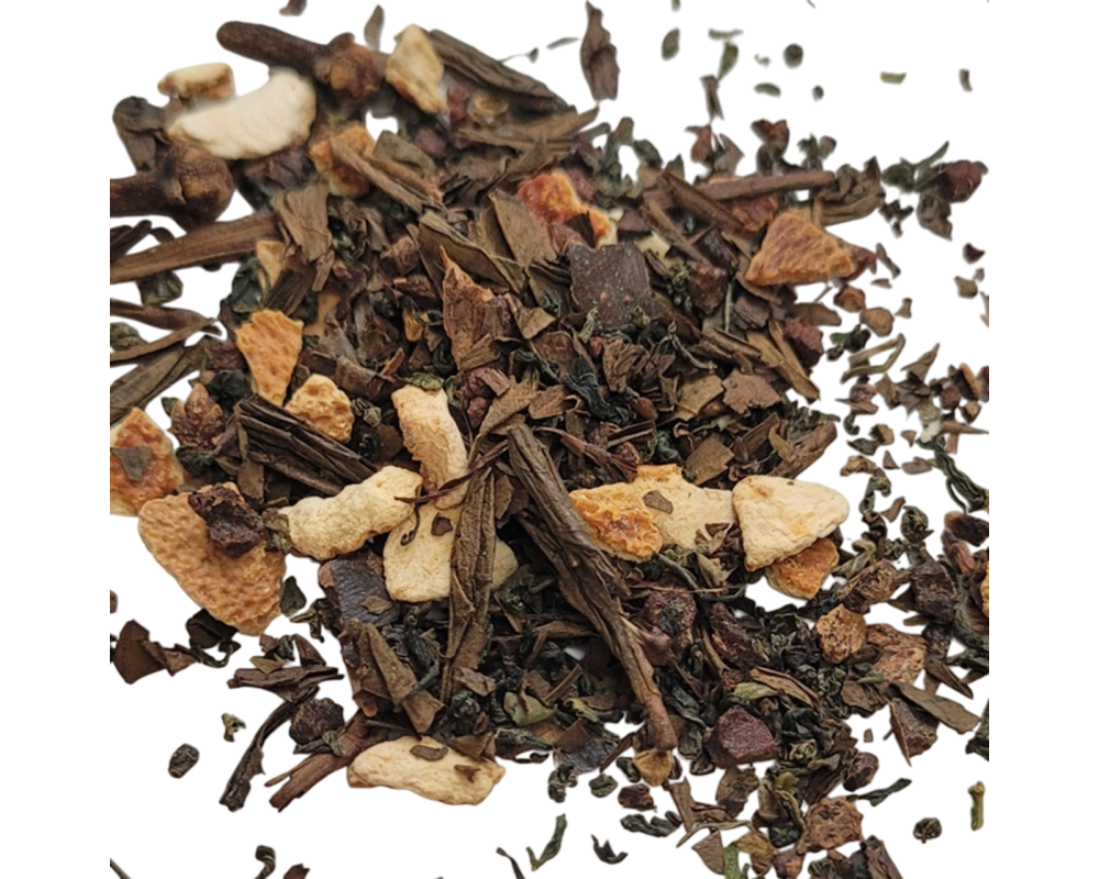 Tags: tea, green tea, hojicha, gynostemma, carob, orange, clove, christmas, holiday