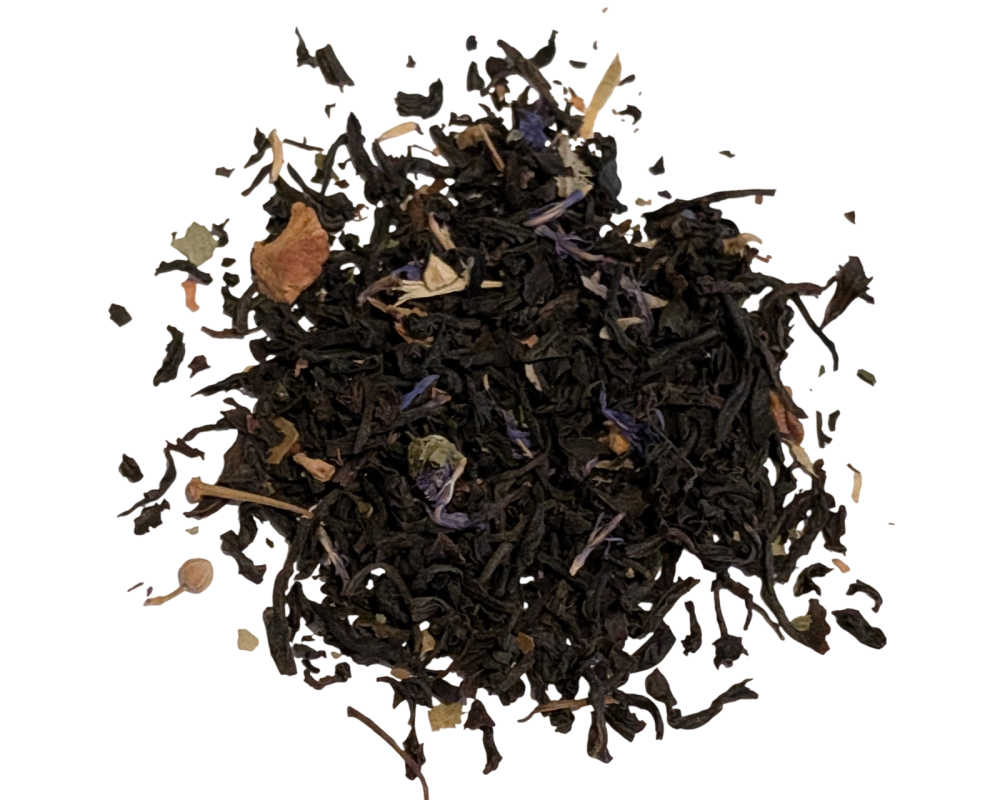Black tea, apple pieces, cornflower, linden, and mallow petals, natural flavours.