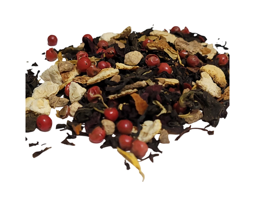 Tags: tea, green tea, black tea, ginger, pink peppercorn, beet, orange peel, chili, houseblend, castlemania