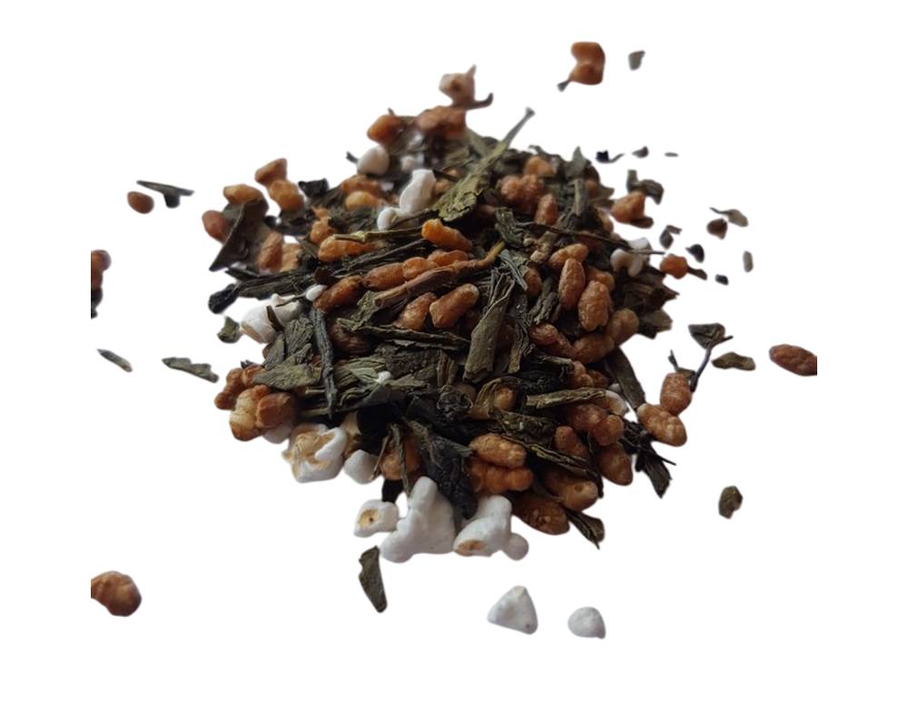 This is a specialty Japanese green tea (normally a high grade of Sencha) that is blended with fire-toasted rice.