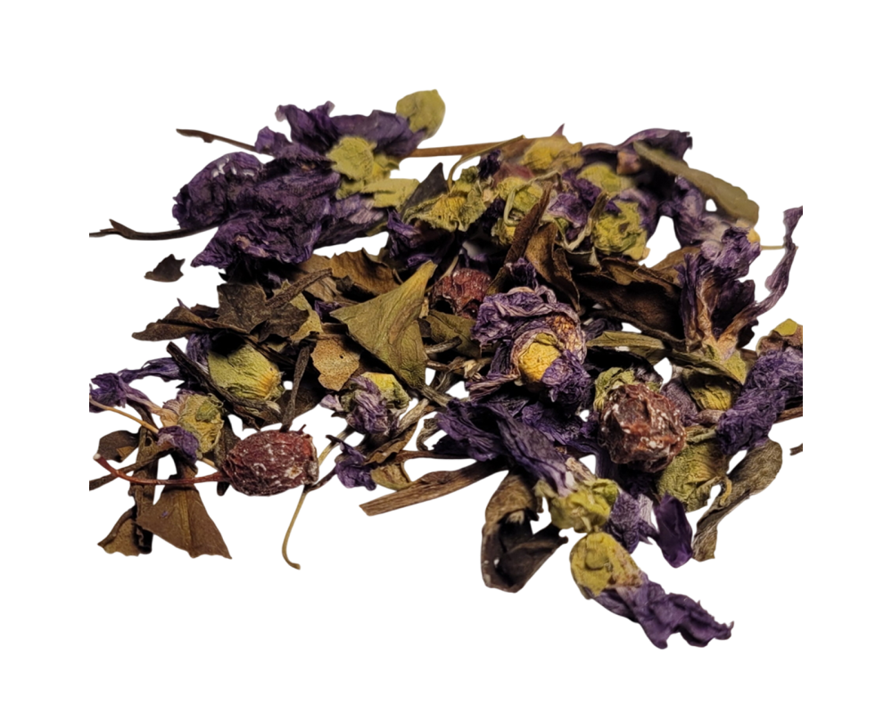 White tea, mallow petals, hawthorn berries, gynostemma.
