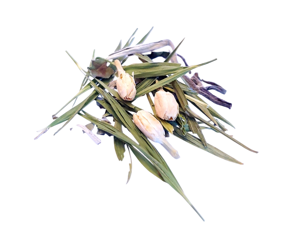 White tea, green tea, jasmine petals, bamboo leaves.