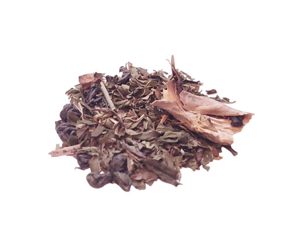 Green tea, peppermint, spearmint, lime pieces.