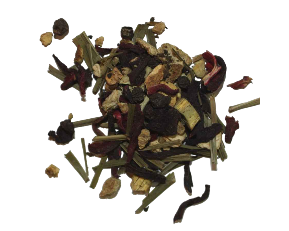 Black tea, pineapple, lemon, and lime pieces, calendula petals, lemongrass leaves, sunflower petals, ginger, and natural flavours.