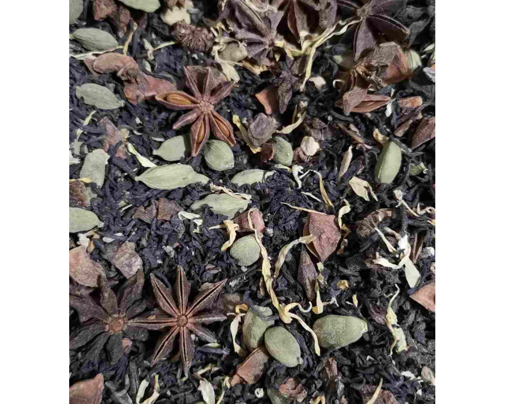 Black tea, ginger, cinnamon, cardamom, black and white pepper, clove, calendula petals, star anise, nutmeg, and natural flavours.